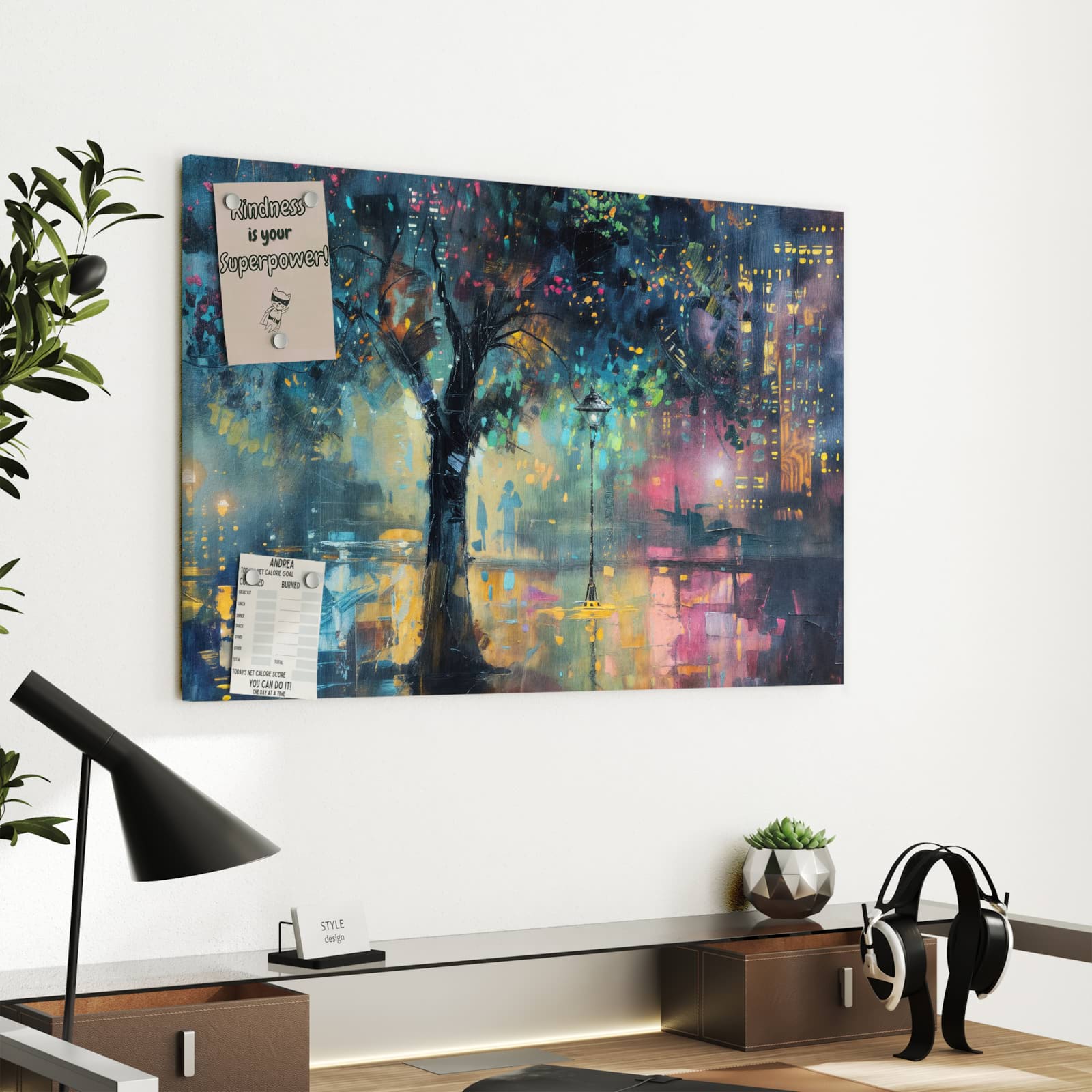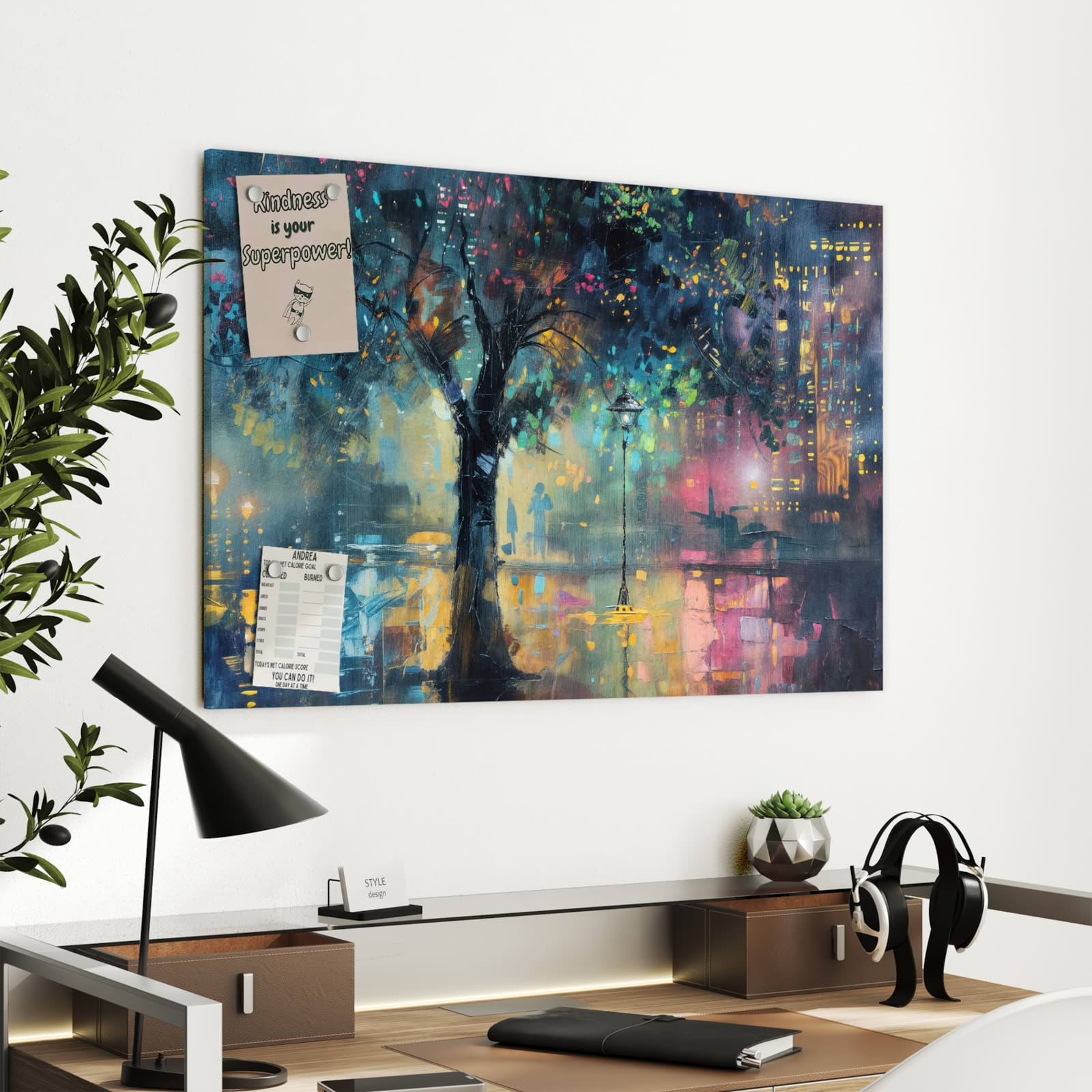 Die Metall-Magnettafel von Primedeco ist eine stilvolle und praktische Ergänzung für jede moderne Einrichtung. Sie vereint elegantes Design mit Funktionalität und wird so zum Blickfang in jedem Raum. Diese Tafel passt sich harmonisch an verschiedene Einrichtungsstile an und eignet sich hervorragend für Wohnzimmer, Büros und mehr.