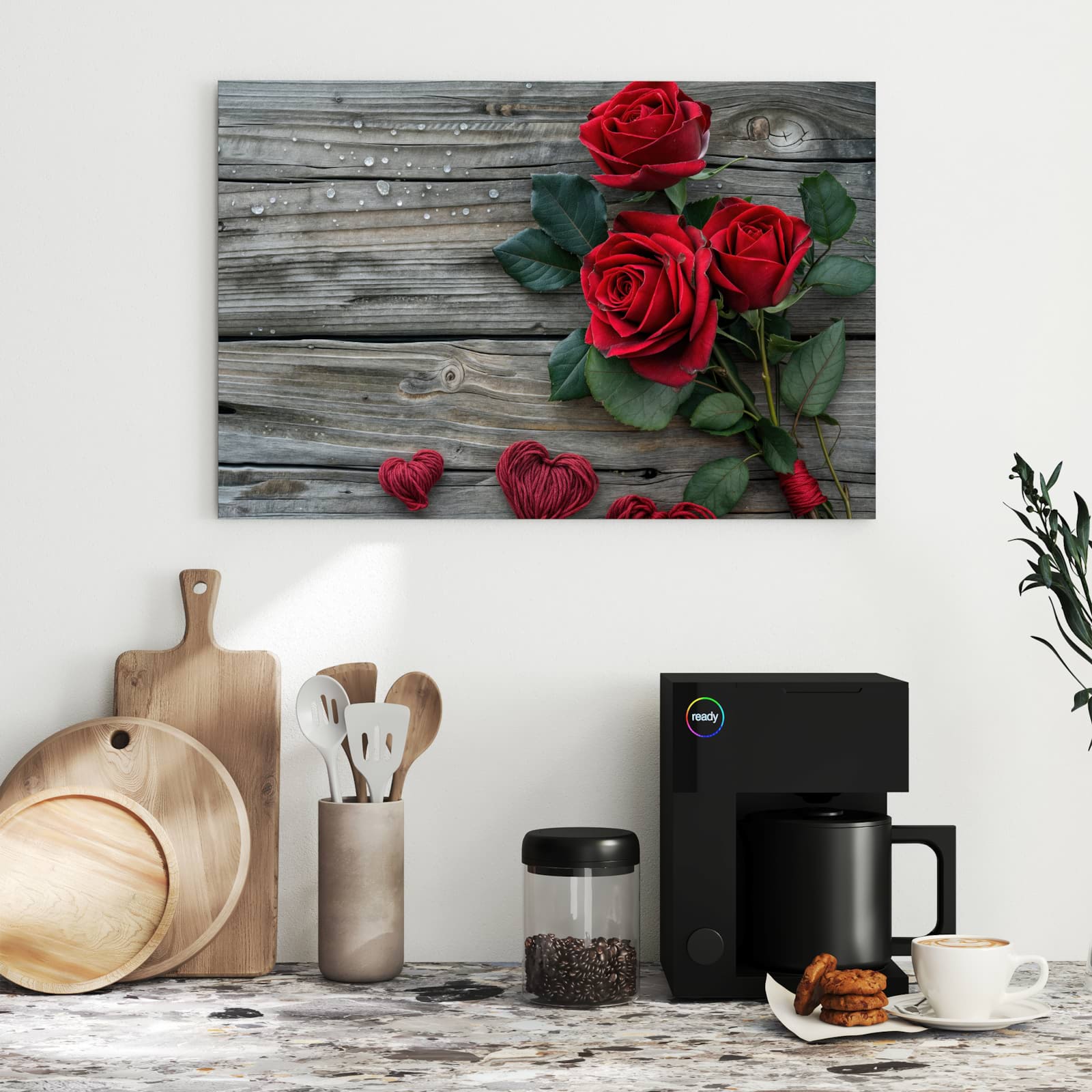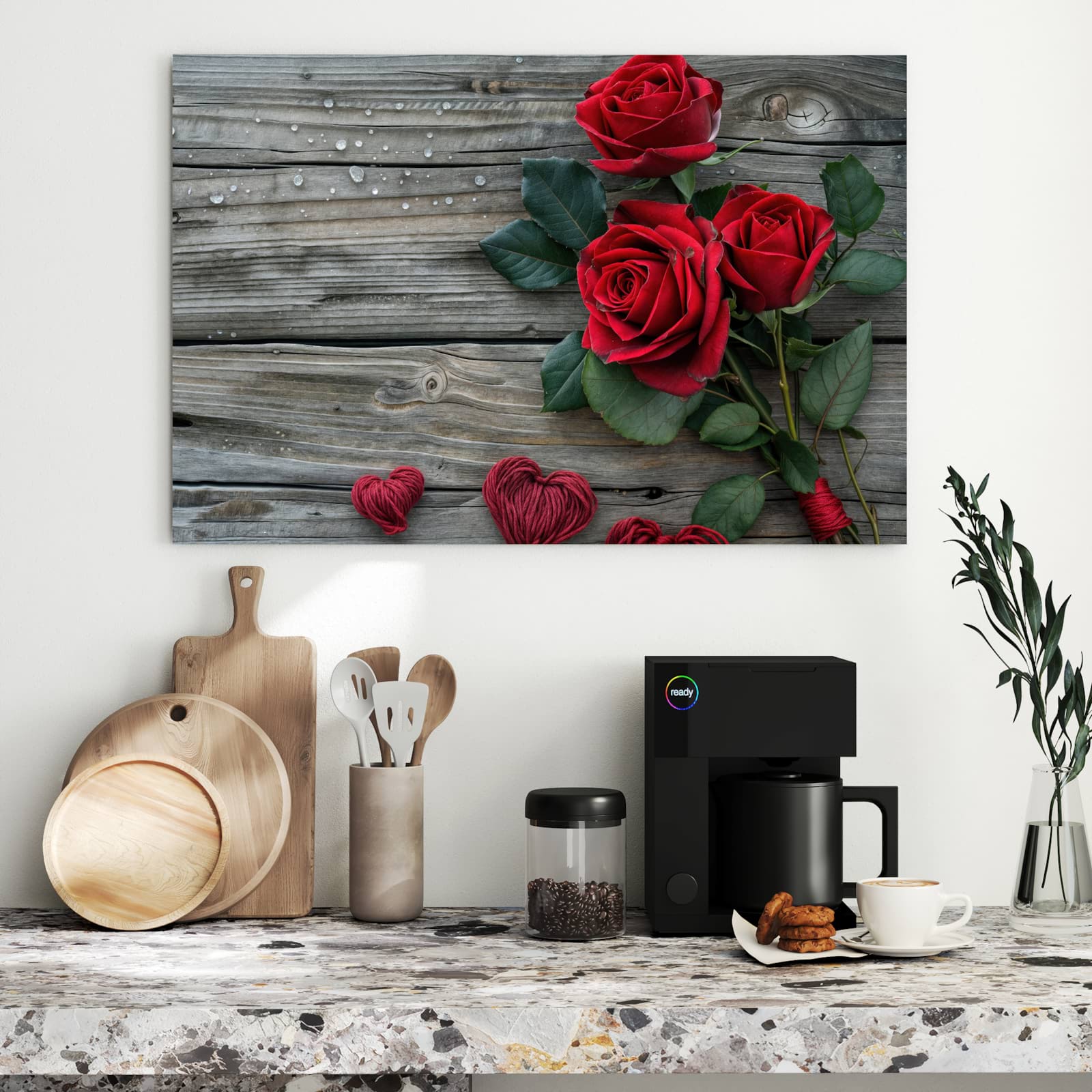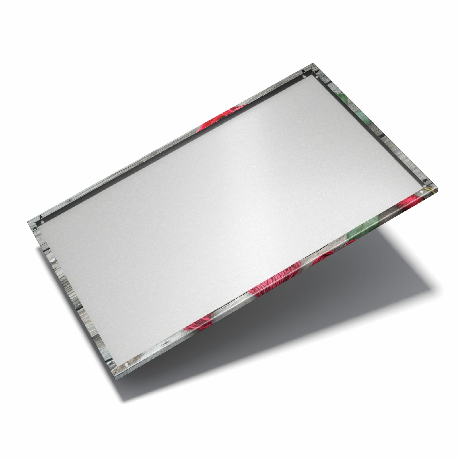 Die Magnettafel besteht aus hochwertigem, pulverbeschichtetem Stahlblech, das für seine robuste und langlebige Natur bekannt ist. Diese Beschaffenheit macht es beständig gegen UV-Strahlen und Feuchtigkeit. Die glatte Metalloberfläche bietet eine beeindruckende Farbbrillanz und Tiefe. Das Motiv Romantische Rosenherzen wird in hoher Auflösung und mit präzisen Details auf das Metall gedruckt, was eine lebendige und dauerhafte Darstellung sicherstellt.