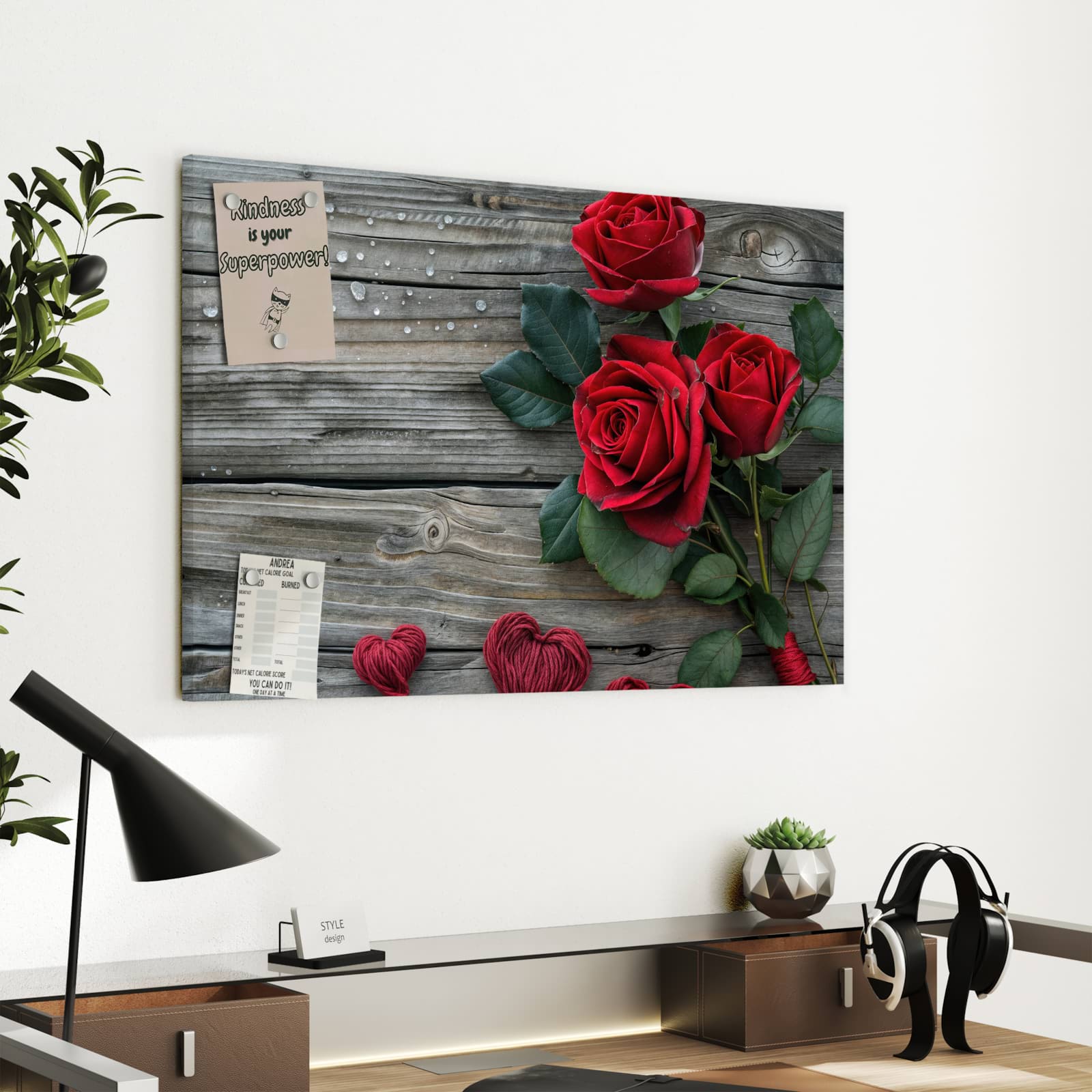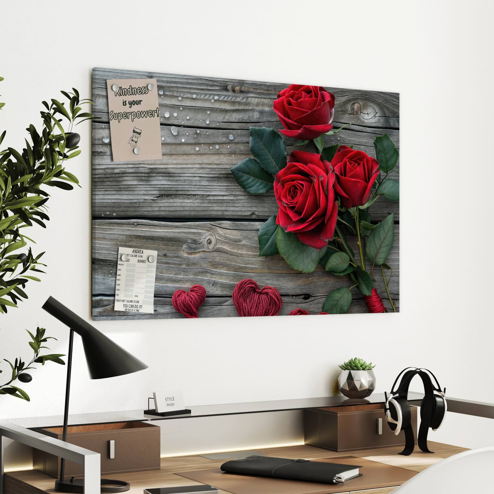 Vielseitige Metall-Magnettafel für Ihr Zuhause - Romantische Rosenherzen