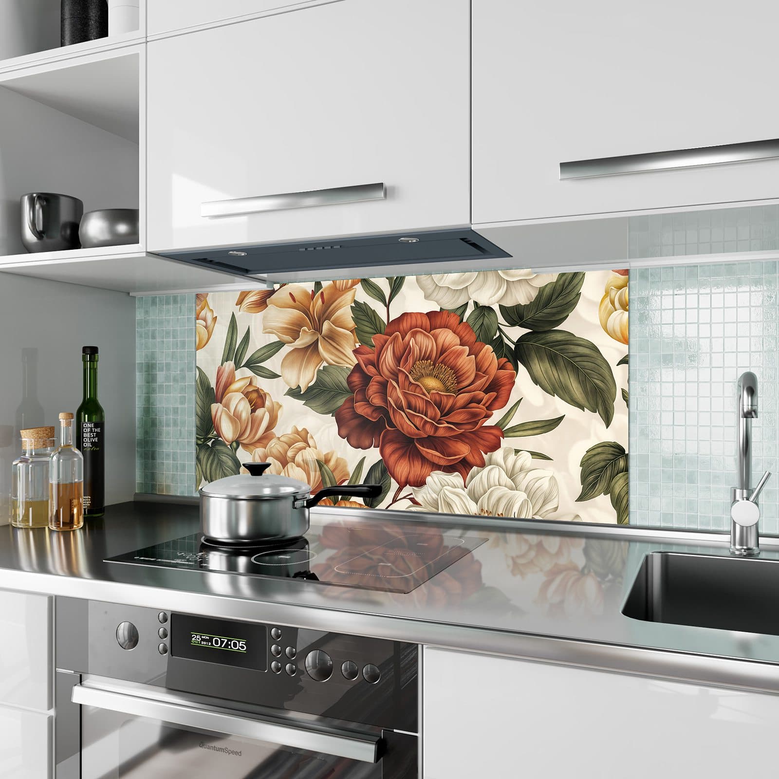 Elegante Küchenrückwand - Dekorative Blumenmuster Vintage