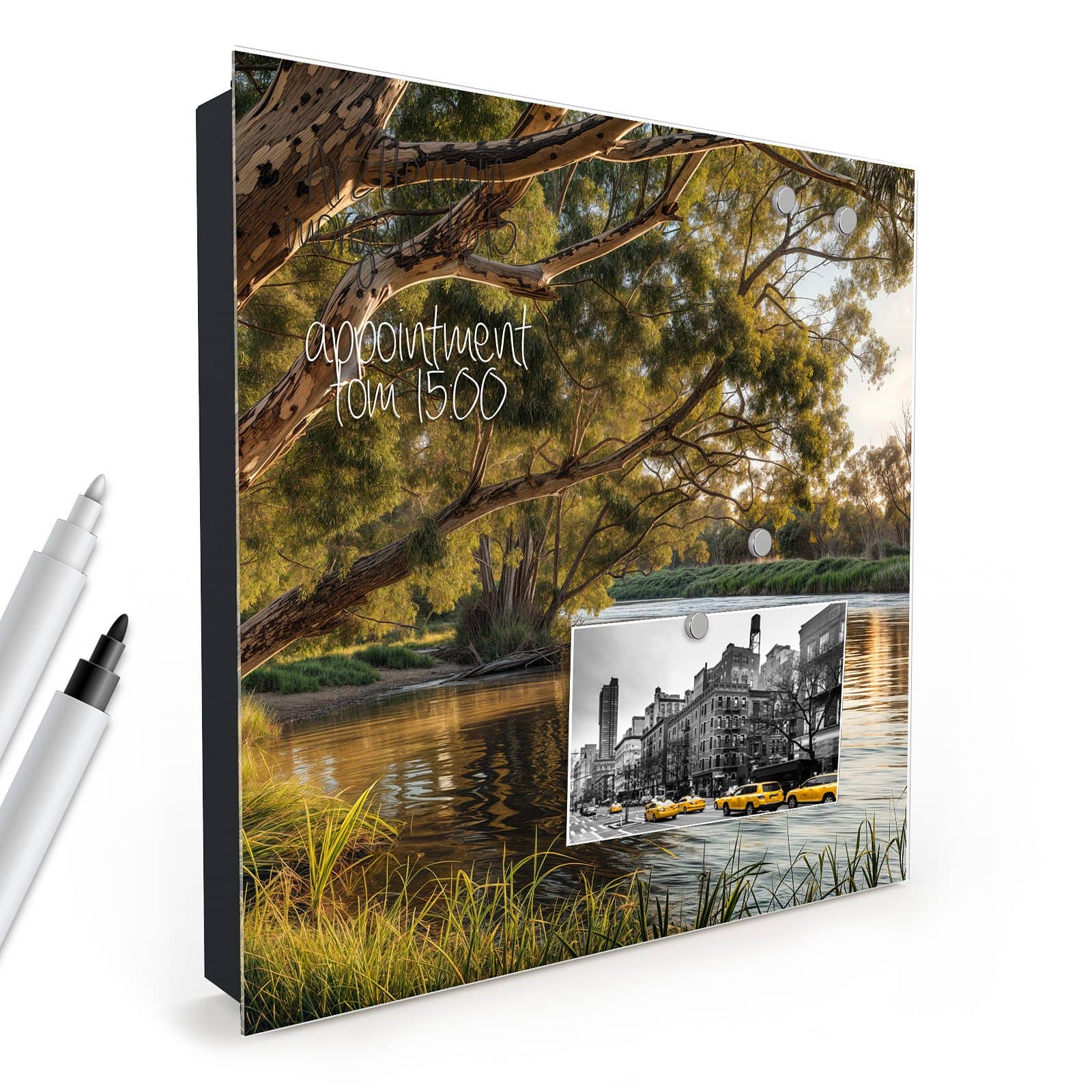 Der Schlüsselkasten ist nicht nur ein praktischer Organizer, sondern auch ein dekoratives Highlight. Die Glasfront ist magnetisch und kann mit den beigelegten Magnetpins individuell gestaltet werden. Ob wichtige Notizen, To-Do-Listen oder Fotos – der Schlüsselkasten wird zur multifunktionalen Pinnwand. Zudem ist die Glastür beschreibbar und bietet so zusätzlichen Platz für kreative Ideen oder Erinnerungen.