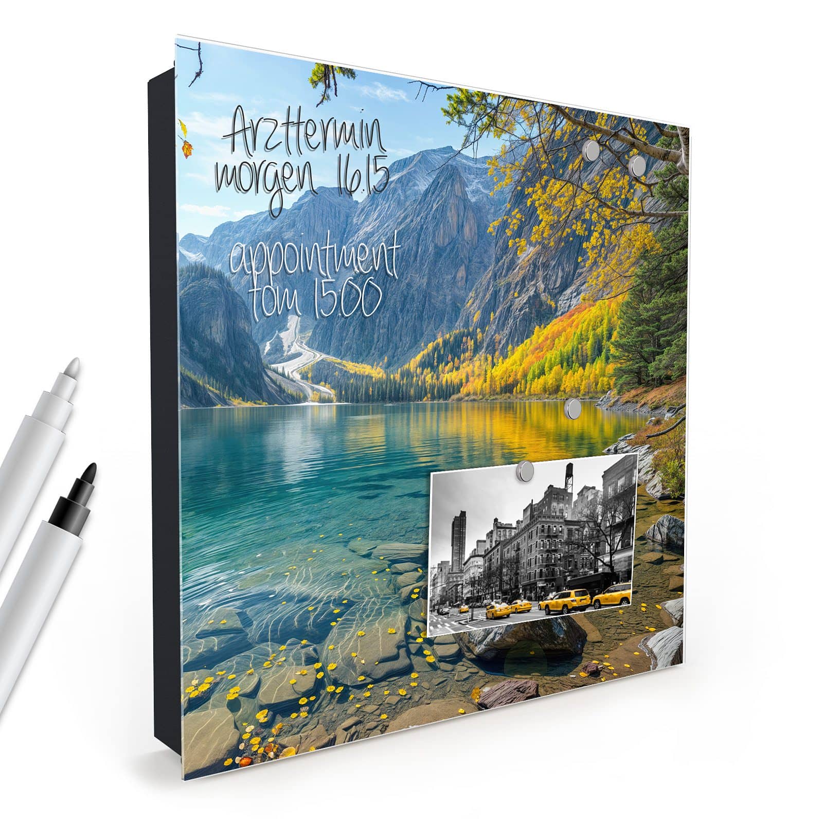 Der Schlüsselkasten ist nicht nur ein praktischer Organizer, sondern auch ein dekoratives Highlight. Die Glasfront ist magnetisch und kann mit den beigelegten Magnetpins individuell gestaltet werden. Ob wichtige Notizen, To-Do-Listen oder Fotos – der Schlüsselkasten wird zur multifunktionalen Pinnwand. Zudem ist die Glastür beschreibbar und bietet so zusätzlichen Platz für kreative Ideen oder Erinnerungen.