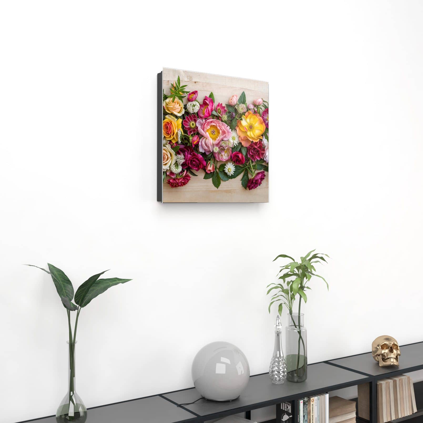 Der Schlüsselkasten ist nicht nur ein praktischer Organizer, sondern auch ein dekoratives Highlight. Die Glasfront ist magnetisch und kann mit den beigelegten Magnetpins individuell gestaltet werden. Ob wichtige Notizen, To-Do-Listen oder Fotos – der Schlüsselkasten wird zur multifunktionalen Pinnwand. Zudem ist die Glastür beschreibbar und bietet so zusätzlichen Platz für kreative Ideen oder Erinnerungen.
