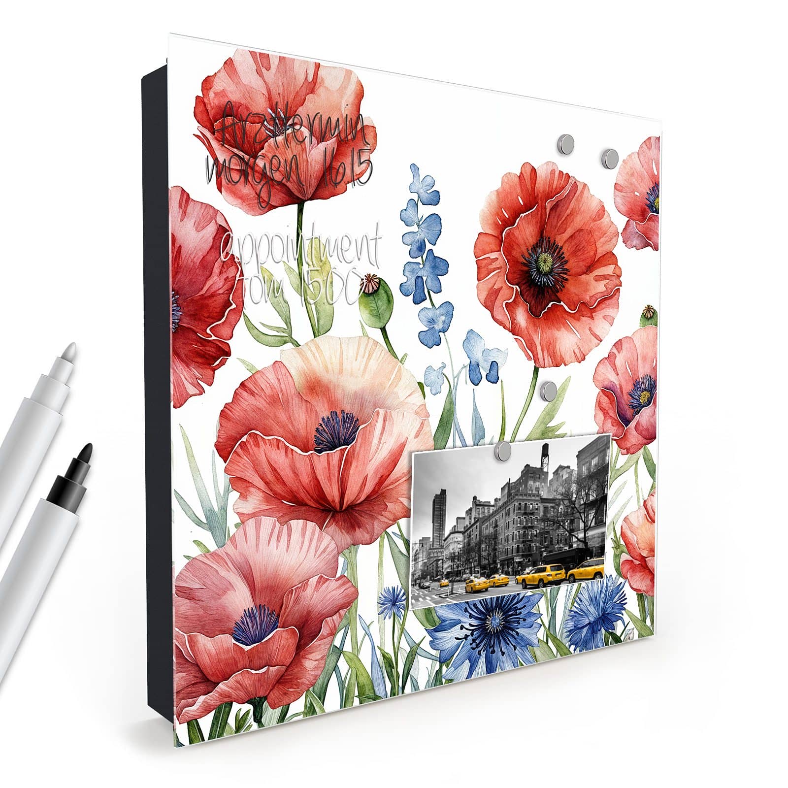 - Glasfront magnetisch und mit Hilfe von mitgelieferten Magnetpins frei dekorierbar