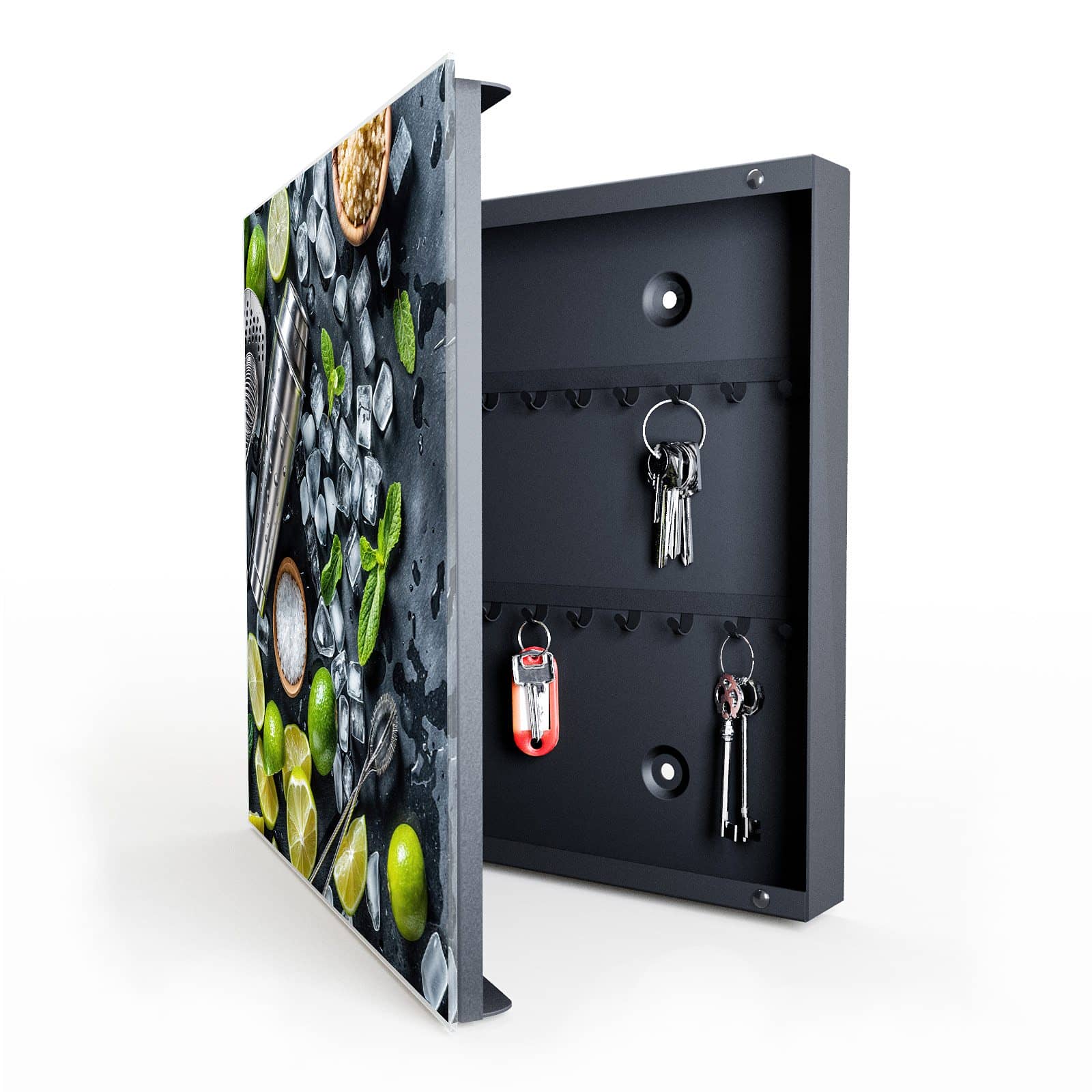 Mit dem Schlüsselkasten von Primedeco gehört das lästige Suchen nach Schlüsseln der Vergangenheit an. Egal ob Hausschlüssel, Autoschlüssel oder Ersatzschlüssel – in diesem stilvollen Kasten aus beschichtetem Stahl und gehärtetem Glas finden alle Schlüssel einen übersichtlichen und platzsparenden Aufbewahrungsort. Dank der 5 Hakenreihen mit insgesamt 50 Plätzen bietet er genügend Raum für Familien, Büros oder kleine Unternehmen.