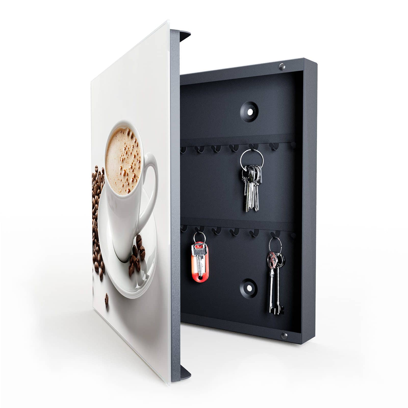 Mit dem Schlüsselkasten von Primedeco gehört das lästige Suchen nach Schlüsseln der Vergangenheit an. Egal ob Hausschlüssel, Autoschlüssel oder Ersatzschlüssel – in diesem stilvollen Kasten aus beschichtetem Stahl und gehärtetem Glas finden alle Schlüssel einen übersichtlichen und platzsparenden Aufbewahrungsort. Dank der 5 Hakenreihen mit insgesamt 50 Plätzen bietet er genügend Raum für Familien, Büros oder kleine Unternehmen.