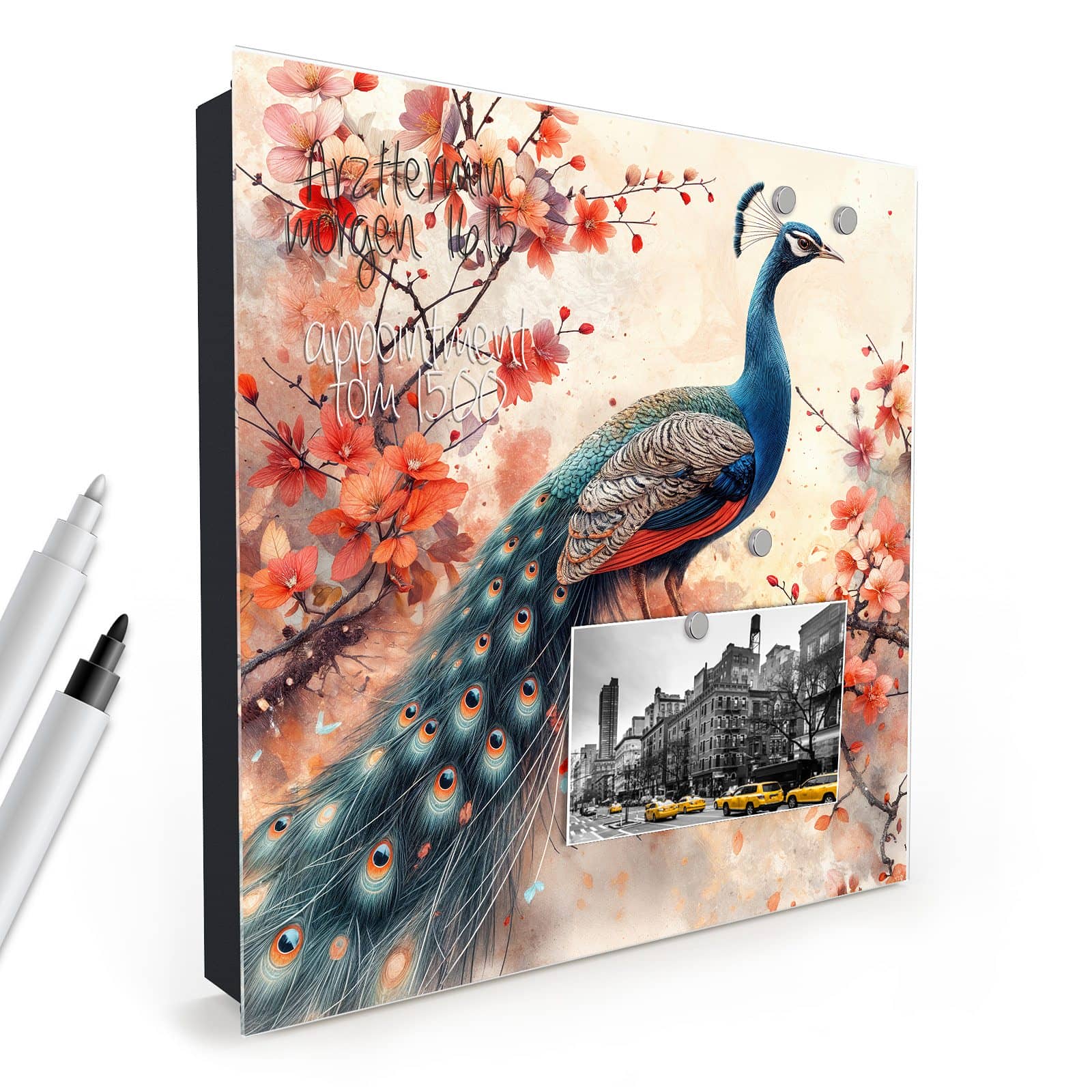 Der Schlüsselkasten ist nicht nur ein praktischer Organizer, sondern auch ein dekoratives Highlight. Die Glasfront ist magnetisch und kann mit den beigelegten Magnetpins individuell gestaltet werden. Ob wichtige Notizen, To-Do-Listen oder Fotos – der Schlüsselkasten wird zur multifunktionalen Pinnwand. Zudem ist die Glastür beschreibbar und bietet so zusätzlichen Platz für kreative Ideen oder Erinnerungen.