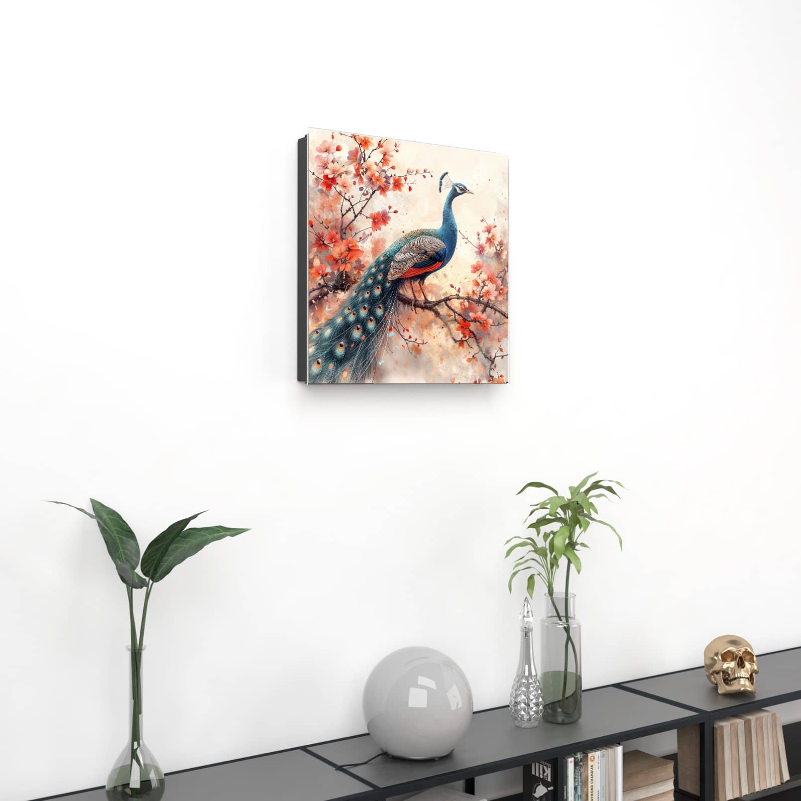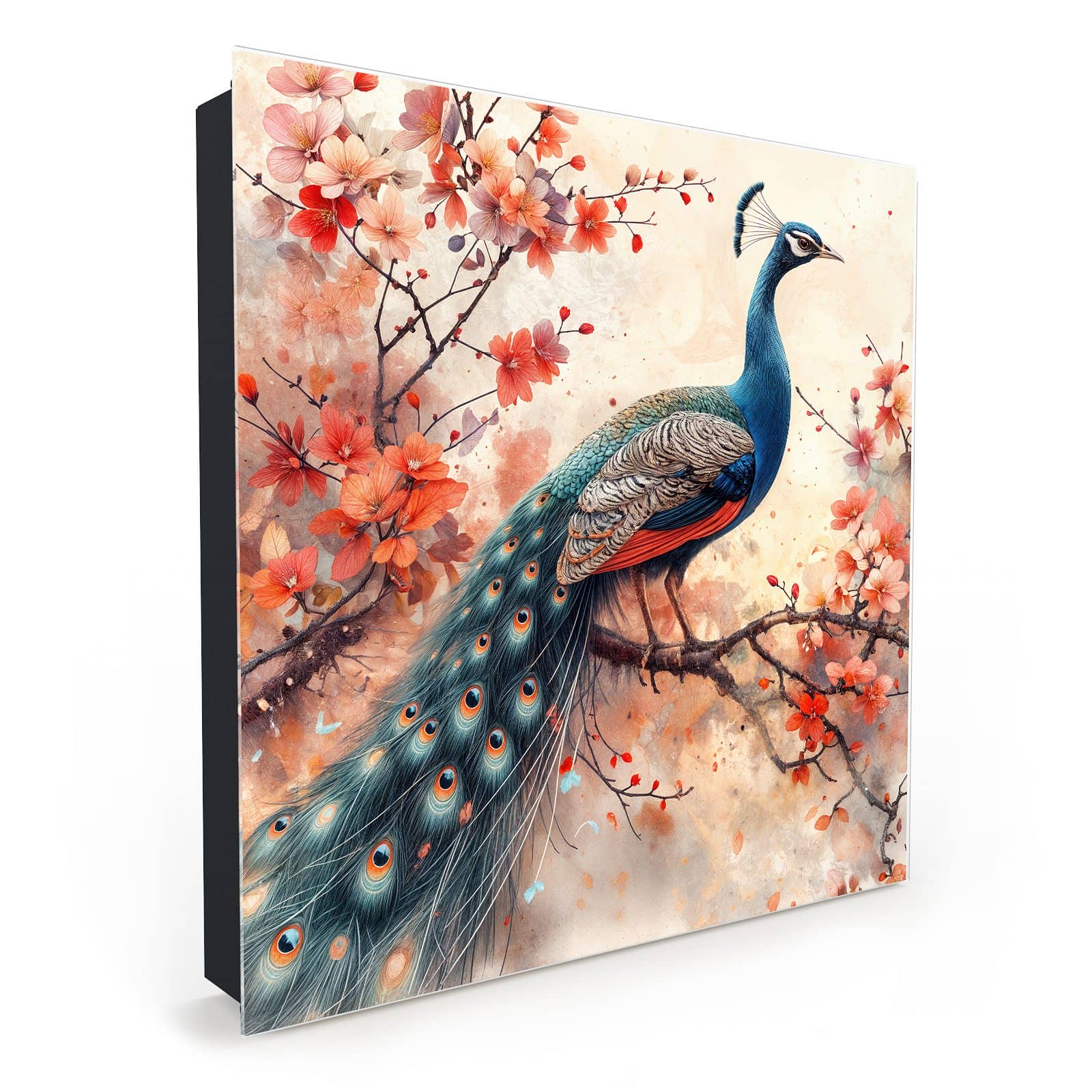 Schlüsselkasten Pfau und Blüten