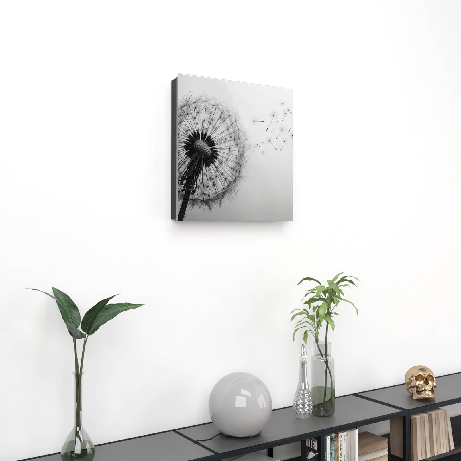 Der Schlüsselkasten ist nicht nur ein praktischer Organizer, sondern auch ein dekoratives Highlight. Die Glasfront ist magnetisch und kann mit den beigelegten Magnetpins individuell gestaltet werden. Ob wichtige Notizen, To-Do-Listen oder Fotos – der Schlüsselkasten wird zur multifunktionalen Pinnwand. Zudem ist die Glastür beschreibbar und bietet so zusätzlichen Platz für kreative Ideen oder Erinnerungen.