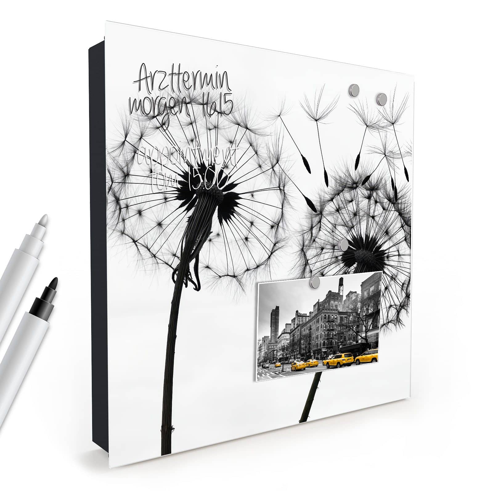 Der Schlüsselkasten ist nicht nur ein praktischer Organizer, sondern auch ein dekoratives Highlight. Die Glasfront ist magnetisch und kann mit den beigelegten Magnetpins individuell gestaltet werden. Ob wichtige Notizen, To-Do-Listen oder Fotos – der Schlüsselkasten wird zur multifunktionalen Pinnwand. Zudem ist die Glastür beschreibbar und bietet so zusätzlichen Platz für kreative Ideen oder Erinnerungen.