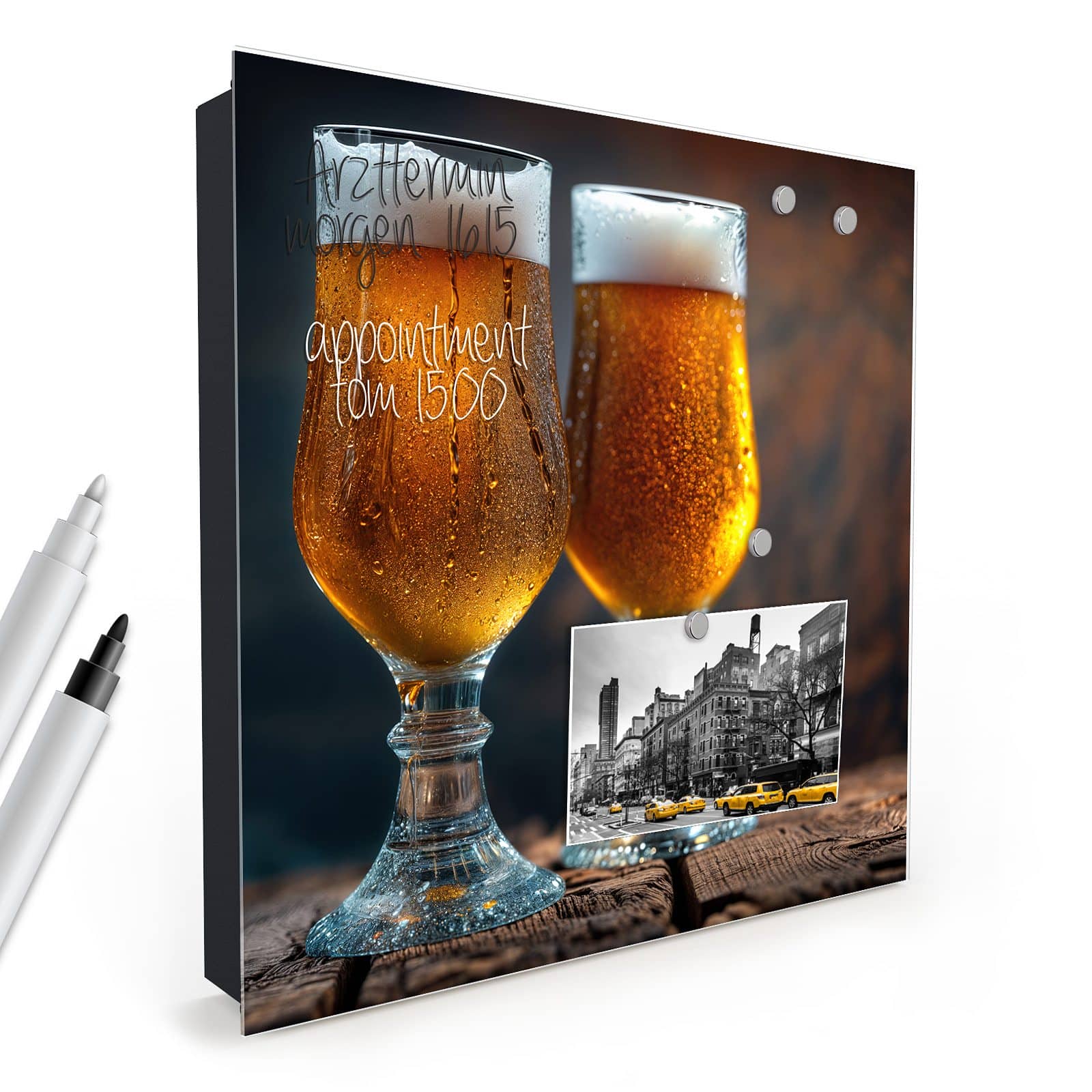 - Glasfront magnetisch und mit Hilfe von mitgelieferten Magnetpins frei dekorierbar