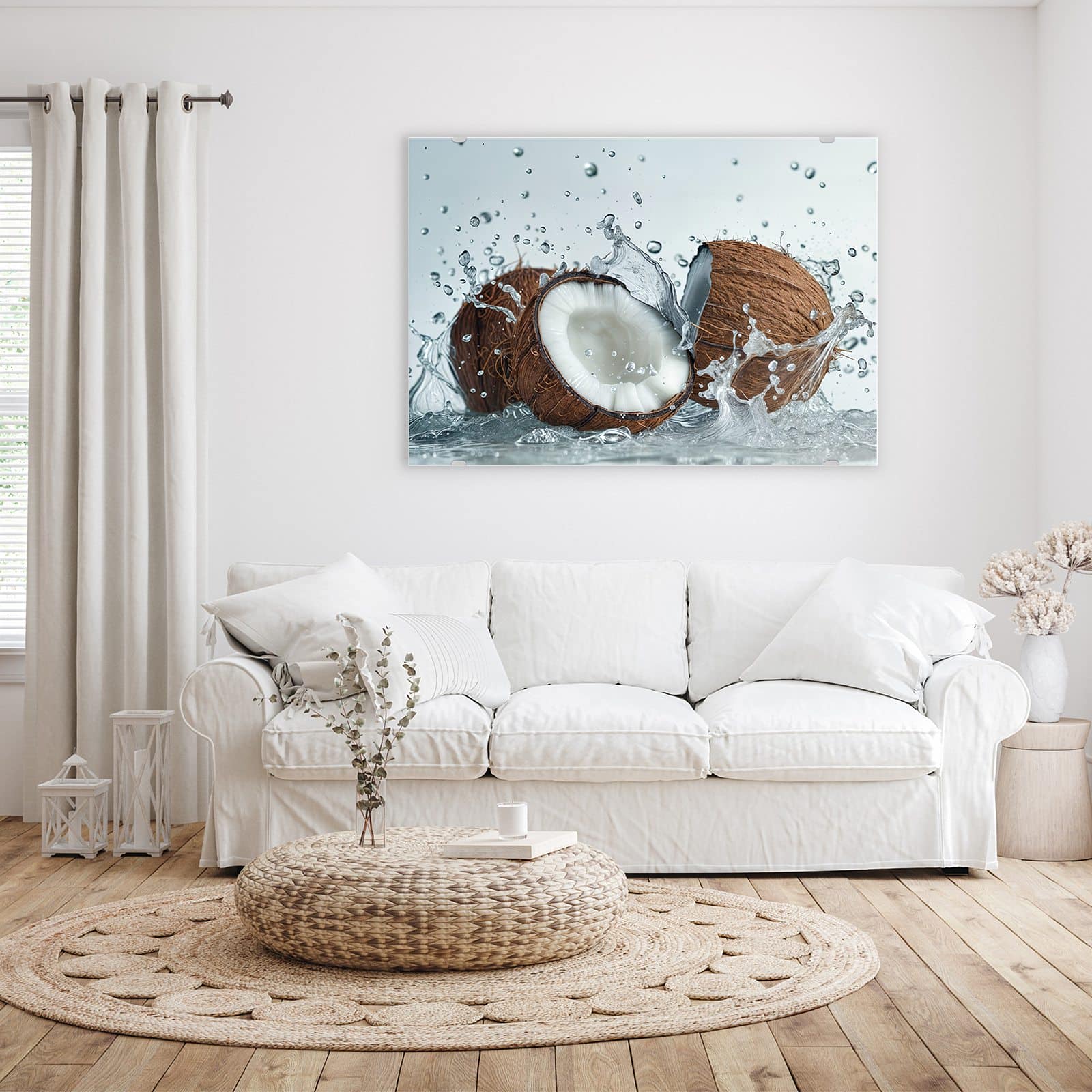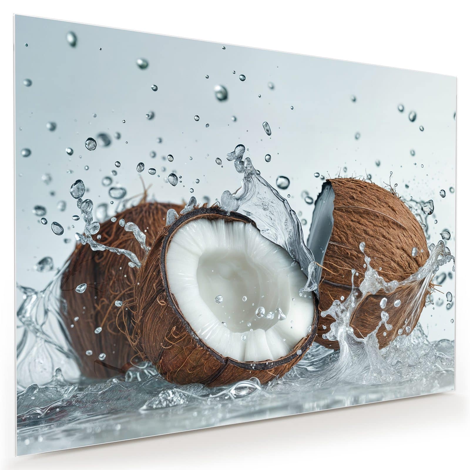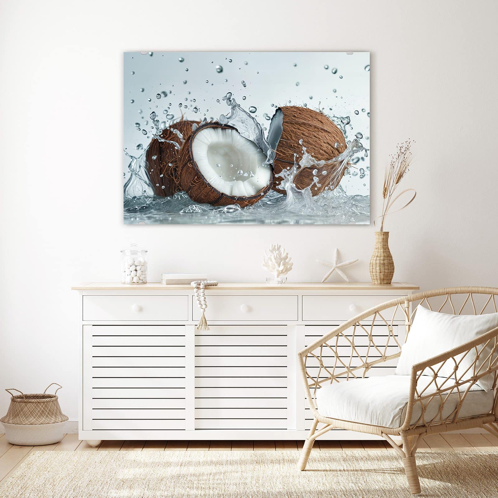 Stilvolle Wanddekoration für Ihr Zuhause - Glasbild Kokosnuss Wasserplatsch