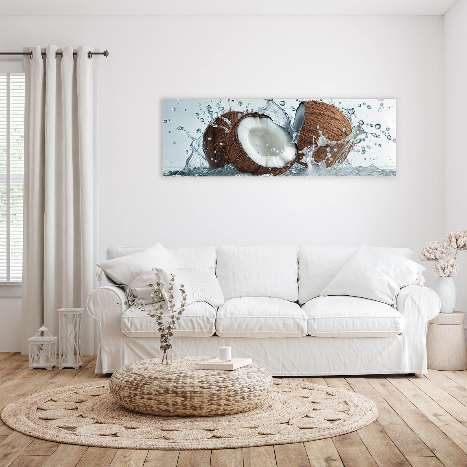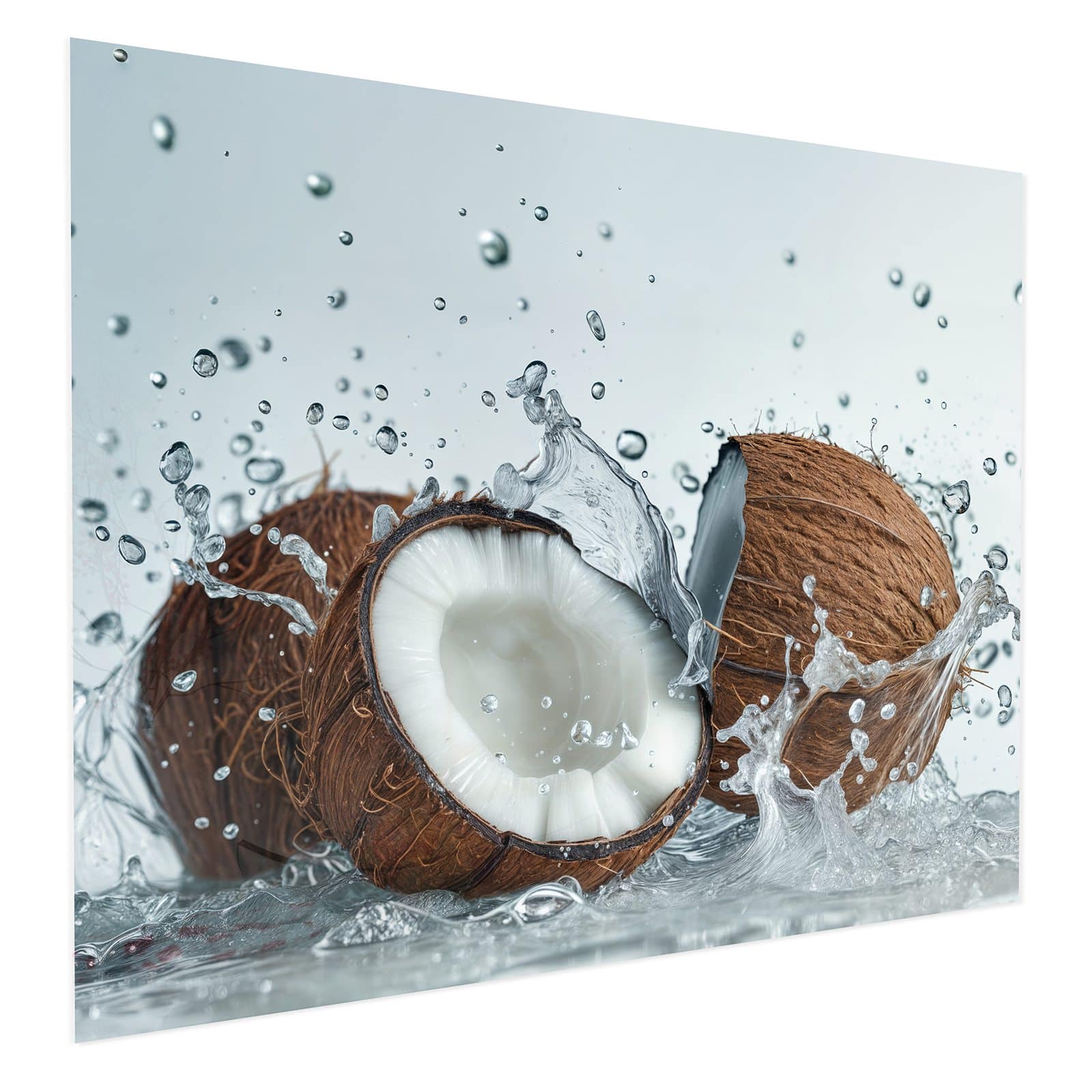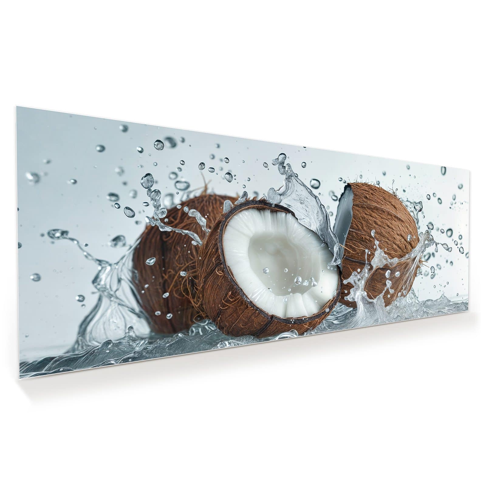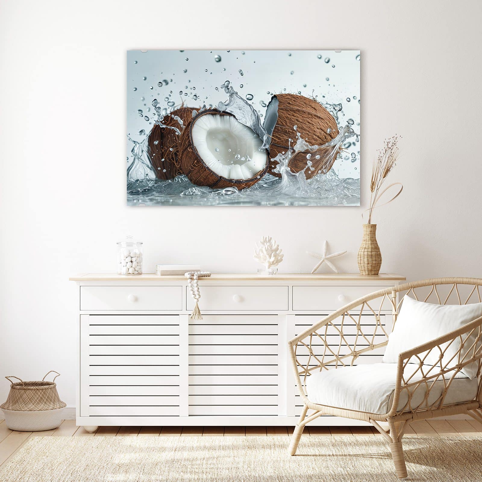 Stilvolle Wanddekoration für Ihr Zuhause - Glasbild Kokosnuss Wasserplatsch