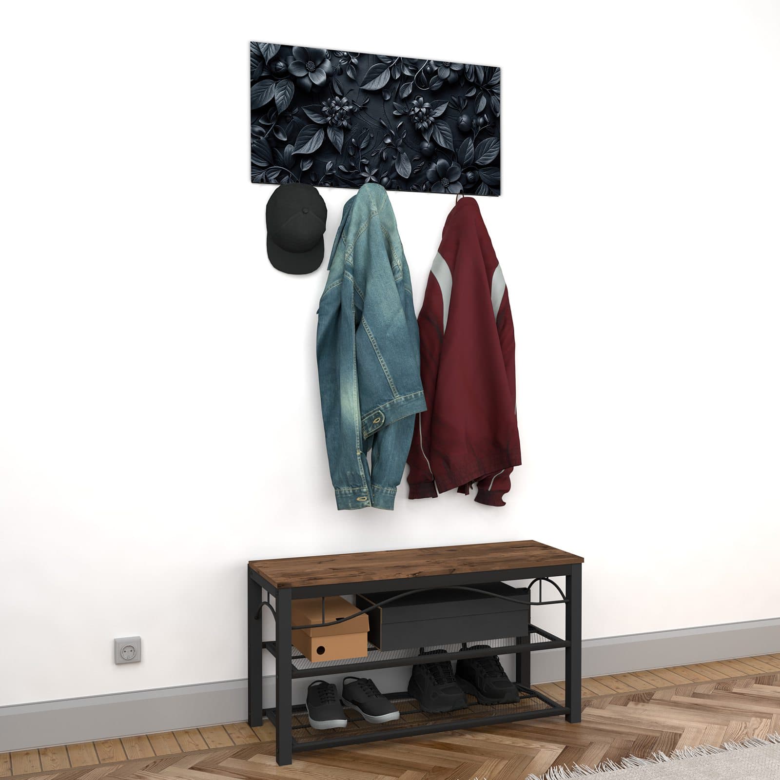 Wandgarderobe Blumenmuster Dunkel