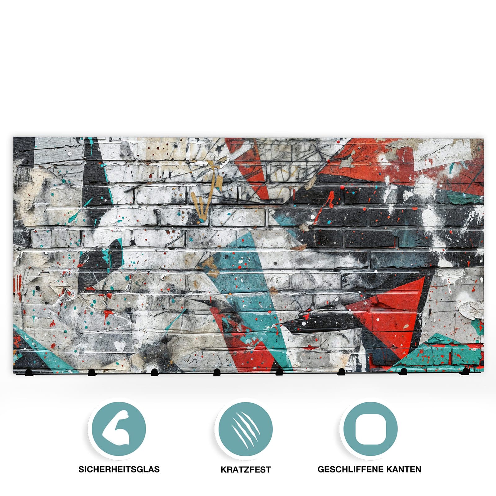 Bei der Herstellung der Wandgarderobe wird besonderer Wert auf Qualität und Langlebigkeit gelegt. Die Vorderseite besteht aus 4 mm dickem gehärtetem Sicherheitsglas, das nicht nur robust ist, sondern auch durch seinen hochwertigen und farbbrillanten Druck besticht. Dieser Druck verleiht der Garderobe mit dem Motiv [MOTIVNAME] ein lebendiges und attraktives Aussehen. Die Rückseite ist aus schwarz lackiertem, rostfreiem Edelstahl gefertigt, was die Kombination sowohl ästhetisch ansprechend als auch besonders langlebig und robust macht.