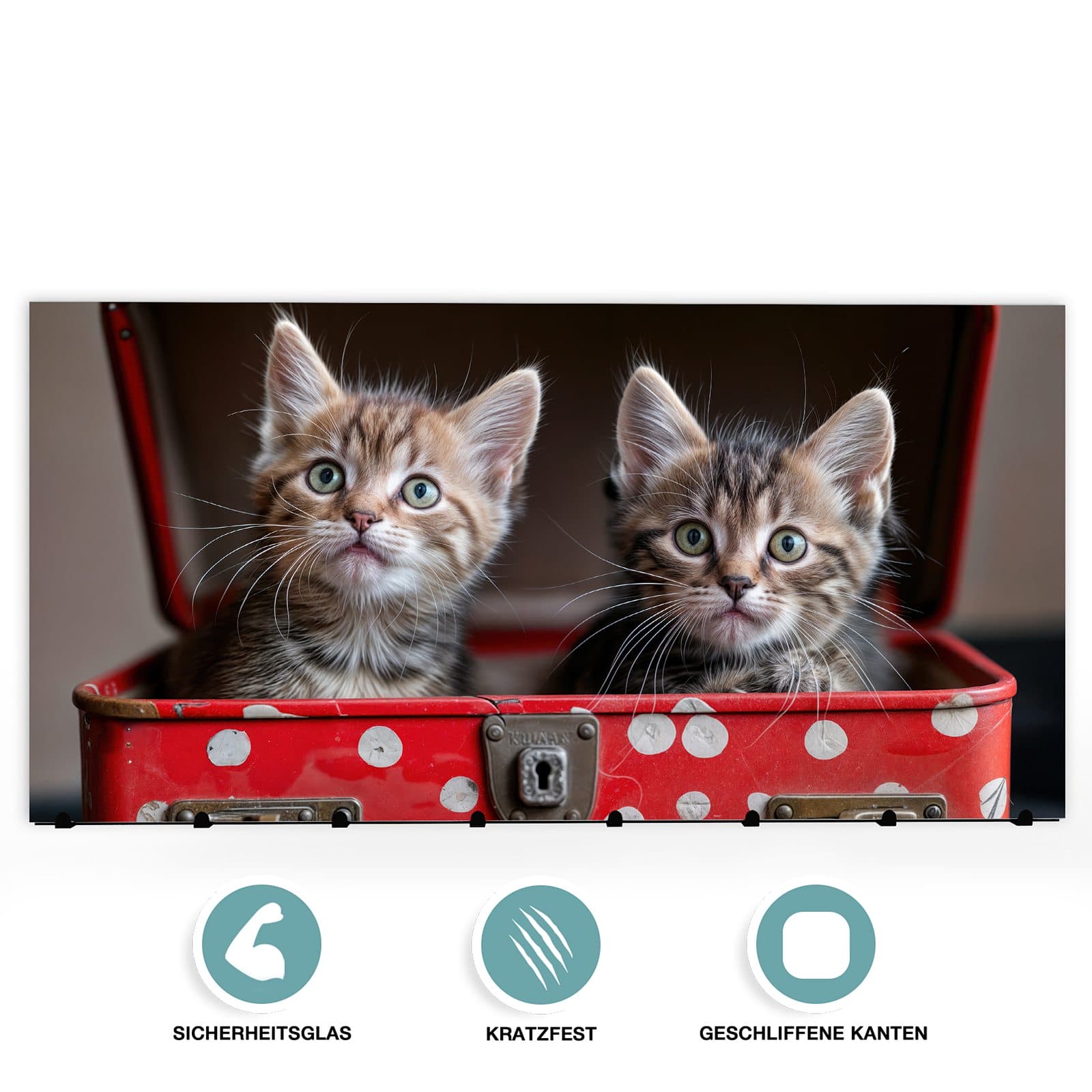Bei der Herstellung der Wandgarderobe wird besonderer Wert auf Qualität und Langlebigkeit gelegt. Die Vorderseite besteht aus 4 mm dickem gehärtetem Sicherheitsglas, das nicht nur robust ist, sondern auch durch seinen hochwertigen und farbbrillanten Druck besticht. Dieser Druck verleiht der Garderobe mit dem Motiv [MOTIVNAME] ein lebendiges und attraktives Aussehen. Die Rückseite ist aus schwarz lackiertem, rostfreiem Edelstahl gefertigt, was die Kombination sowohl ästhetisch ansprechend als auch besonders langlebig und robust macht.