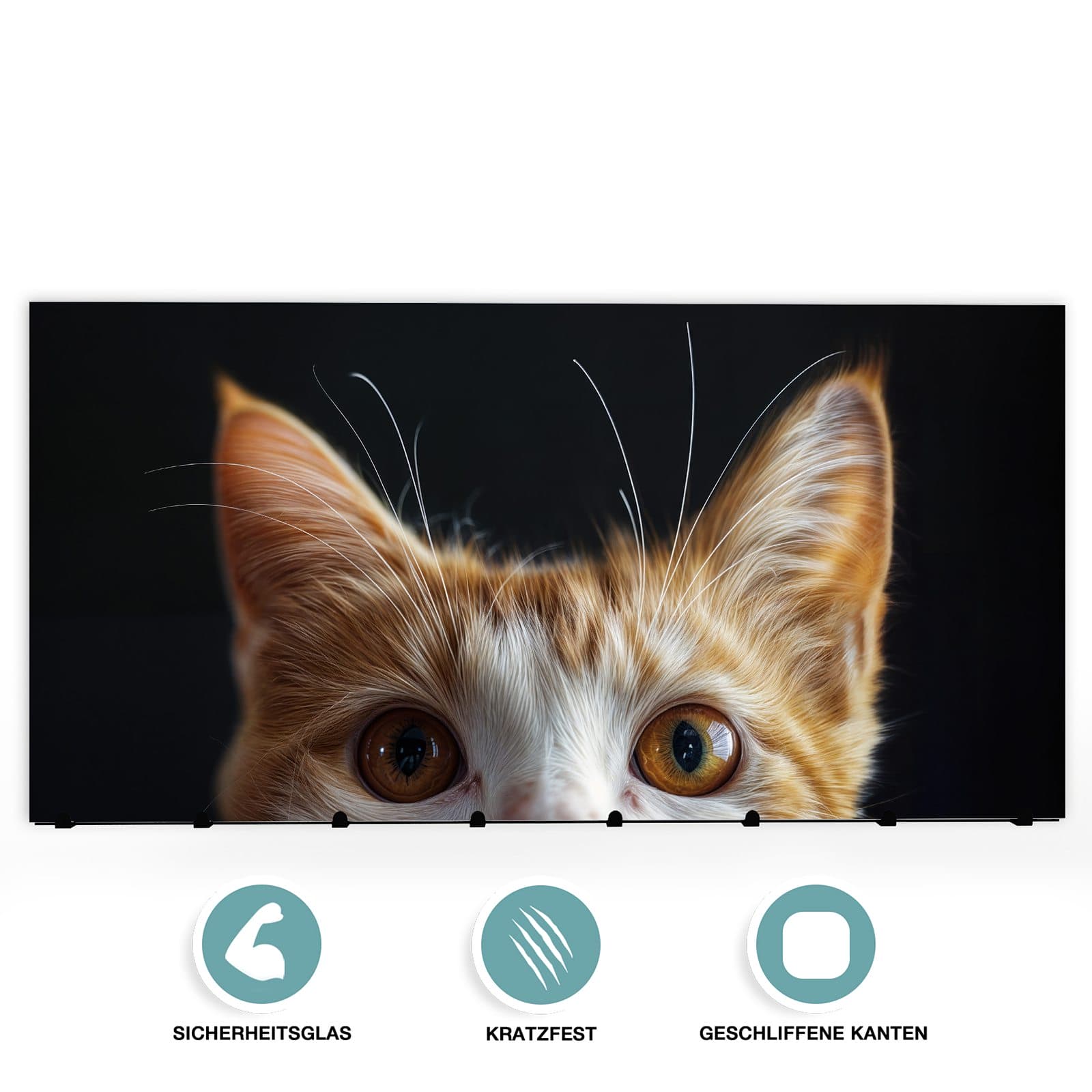 Bei der Herstellung der Wandgarderobe wird besonderer Wert auf Qualität und Langlebigkeit gelegt. Die Vorderseite besteht aus 4 mm dickem gehärtetem Sicherheitsglas, das nicht nur robust ist, sondern auch durch seinen hochwertigen und farbbrillanten Druck besticht. Dieser Druck verleiht der Garderobe mit dem Motiv [MOTIVNAME] ein lebendiges und attraktives Aussehen. Die Rückseite ist aus schwarz lackiertem, rostfreiem Edelstahl gefertigt, was die Kombination sowohl ästhetisch ansprechend als auch besonders langlebig und robust macht.