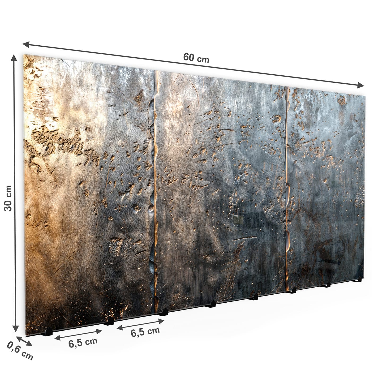 Bei der Herstellung der Wandgarderobe wird besonderer Wert auf Qualität und Langlebigkeit gelegt. Die Vorderseite besteht aus 4 mm dickem gehärtetem Sicherheitsglas, das nicht nur robust ist, sondern auch durch seinen hochwertigen und farbbrillanten Druck besticht. Dieser Druck verleiht der Garderobe mit dem Motiv [MOTIVNAME] ein lebendiges und attraktives Aussehen. Die Rückseite ist aus schwarz lackiertem, rostfreiem Edelstahl gefertigt, was die Kombination sowohl ästhetisch ansprechend als auch besonders langlebig und robust macht.