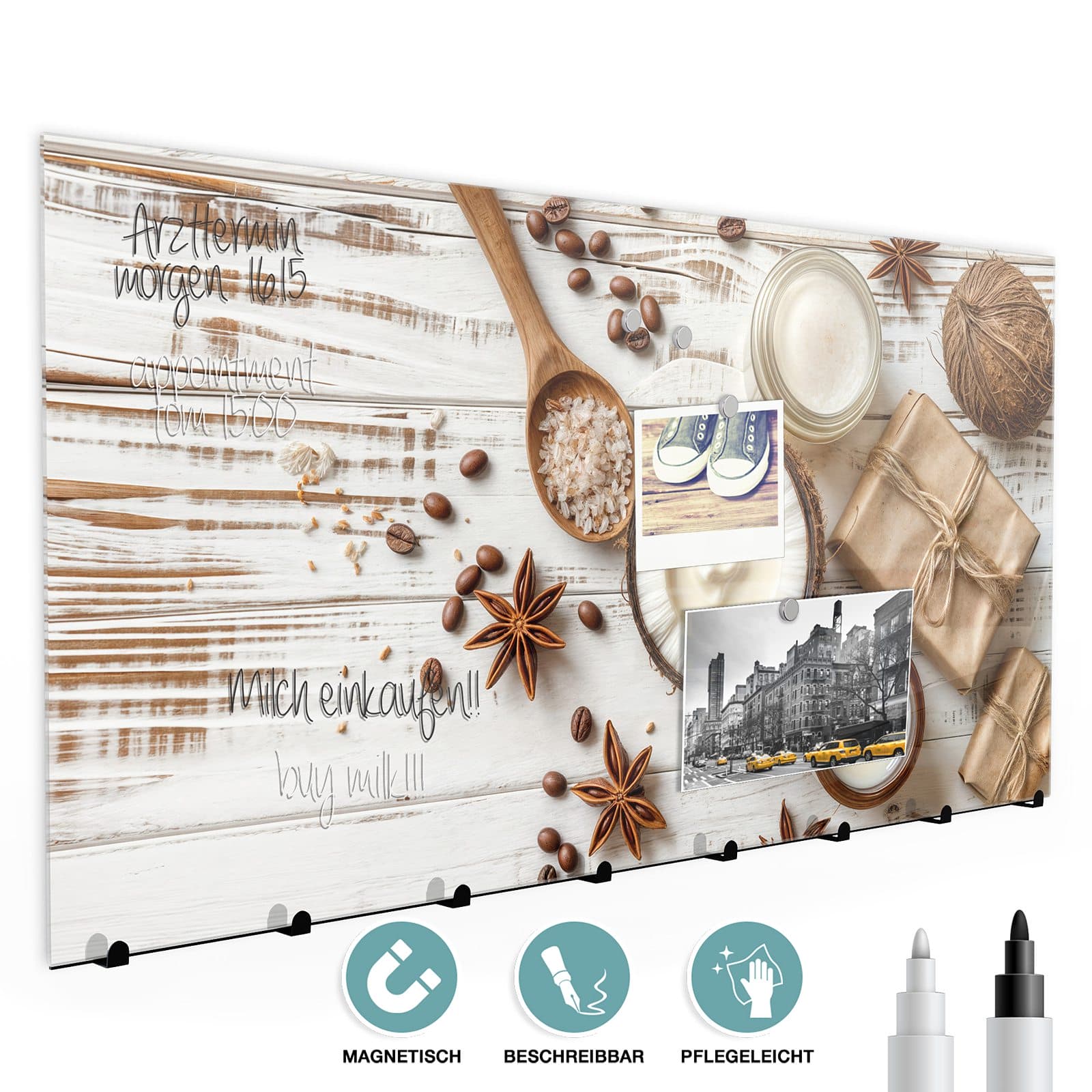 Vielseitige 3-in-1 Wandgarderobe - [MOTIVNAME] Die Wandgarderobe von Primedeco ist weit mehr als ein gewöhnliches Garderobenstück. Sie kombiniert drei essenzielle Funktionen: eine Garderobe, eine magnetische Pinnwand und ein beschreibbares Whiteboard. Dieses multifunktionale Design macht sie zu einem unverzichtbaren Bestandteil jeder modernen und funktionsorientierten Wohnungseinrichtung. Die Integration dieser drei Elemente in einem einzigen Produkt spart nicht nur Platz, sondern sorgt auch für eine elegante und aufgeräumte Optik in Ihrem Eingangsbereich.