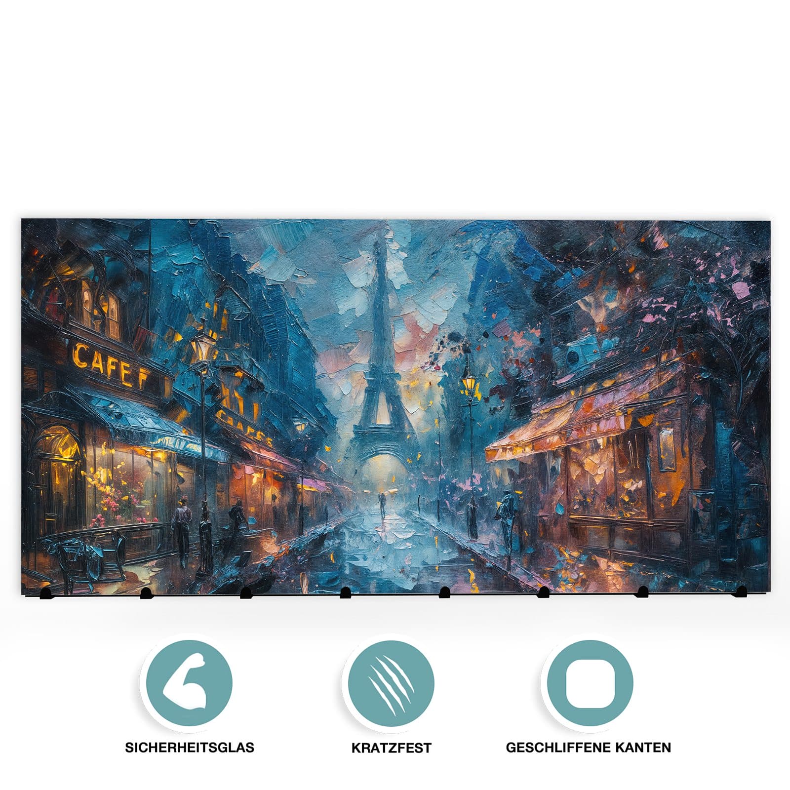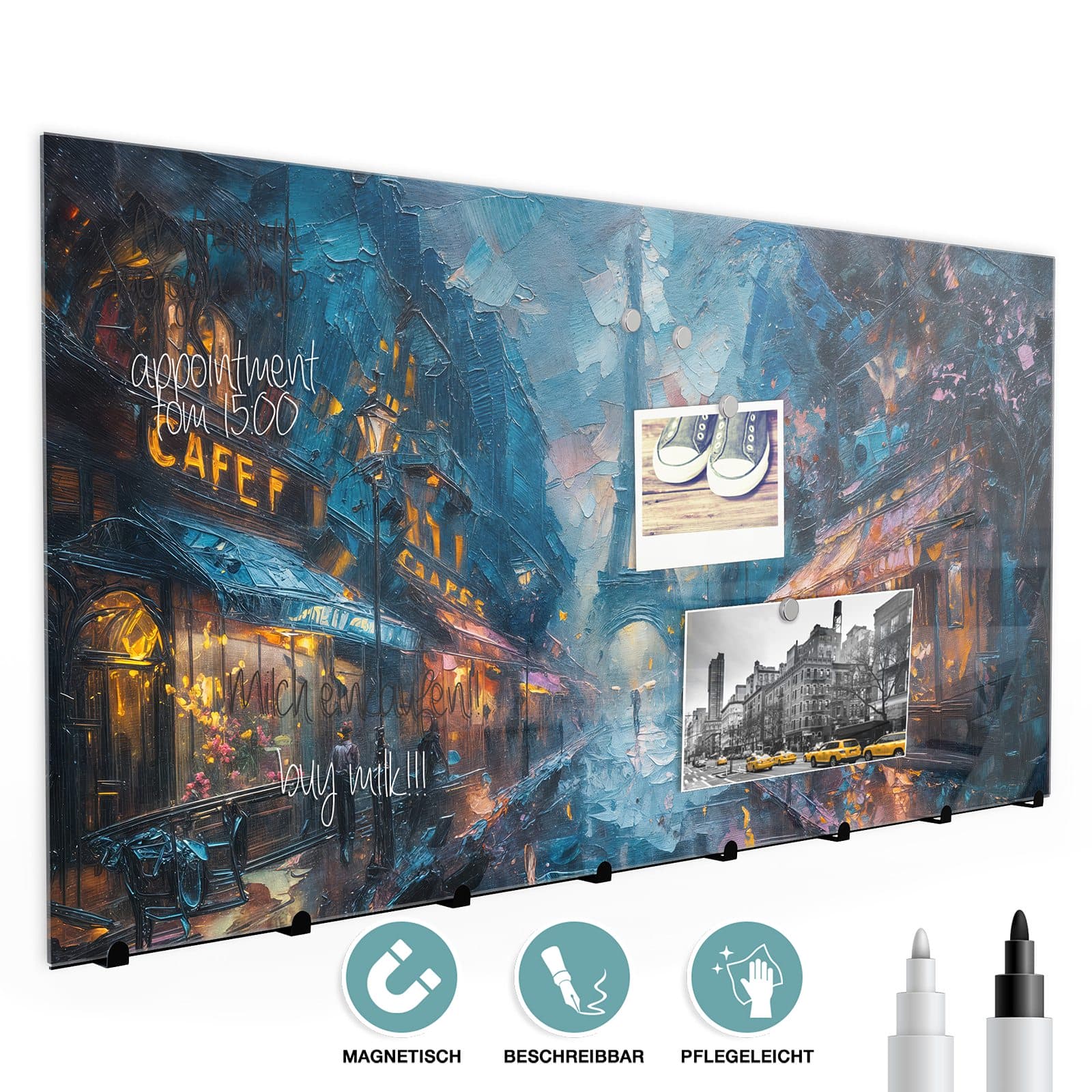 Die Wandgarderobe mit dem Motiv [MOTIVNAME] bietet acht robuste Haken, die perfekt für das Aufhängen von Kleidung, Taschen und anderen Accessoires geeignet sind. Darüber hinaus dient sie als ein magnetisches Memoboard, auf dem Sie Notizen, Fotos und Erinnerungsstücke mit den mitgelieferten Magneten befestigen können. Als beschreibbares Whiteboard bietet sie zudem eine praktische Fläche für schnelle Notizen oder liebe Nachrichten für Ihre Liebsten.