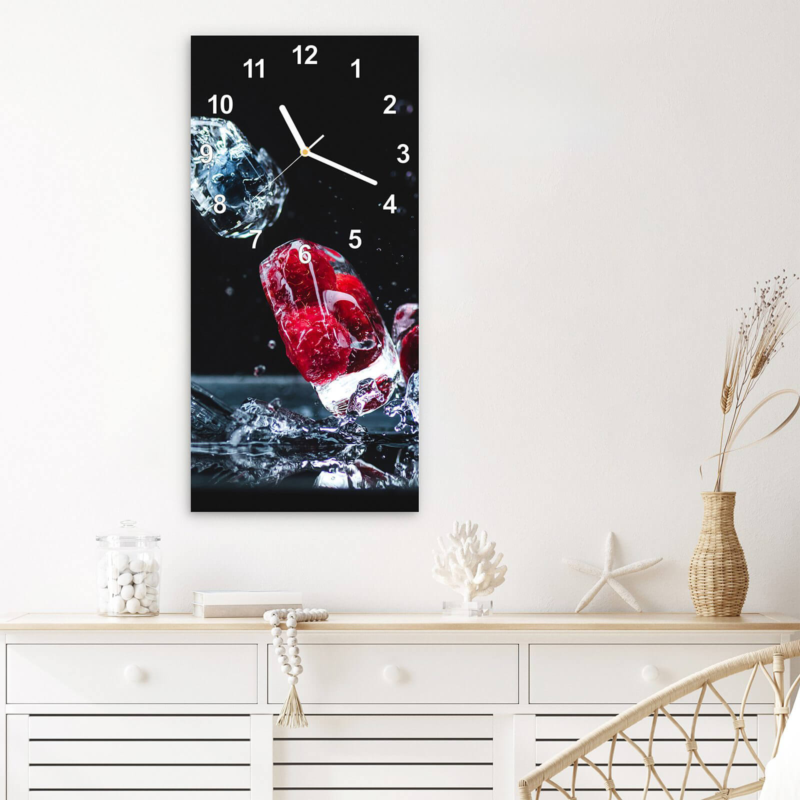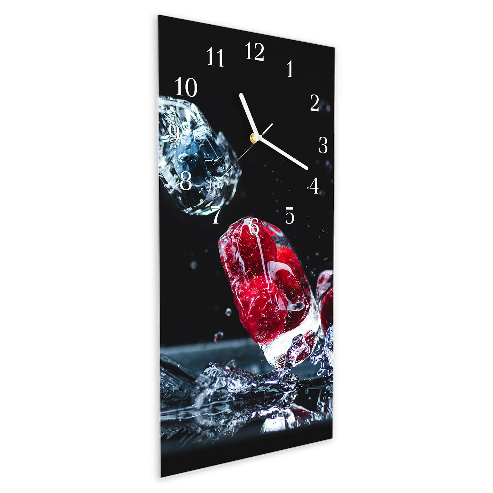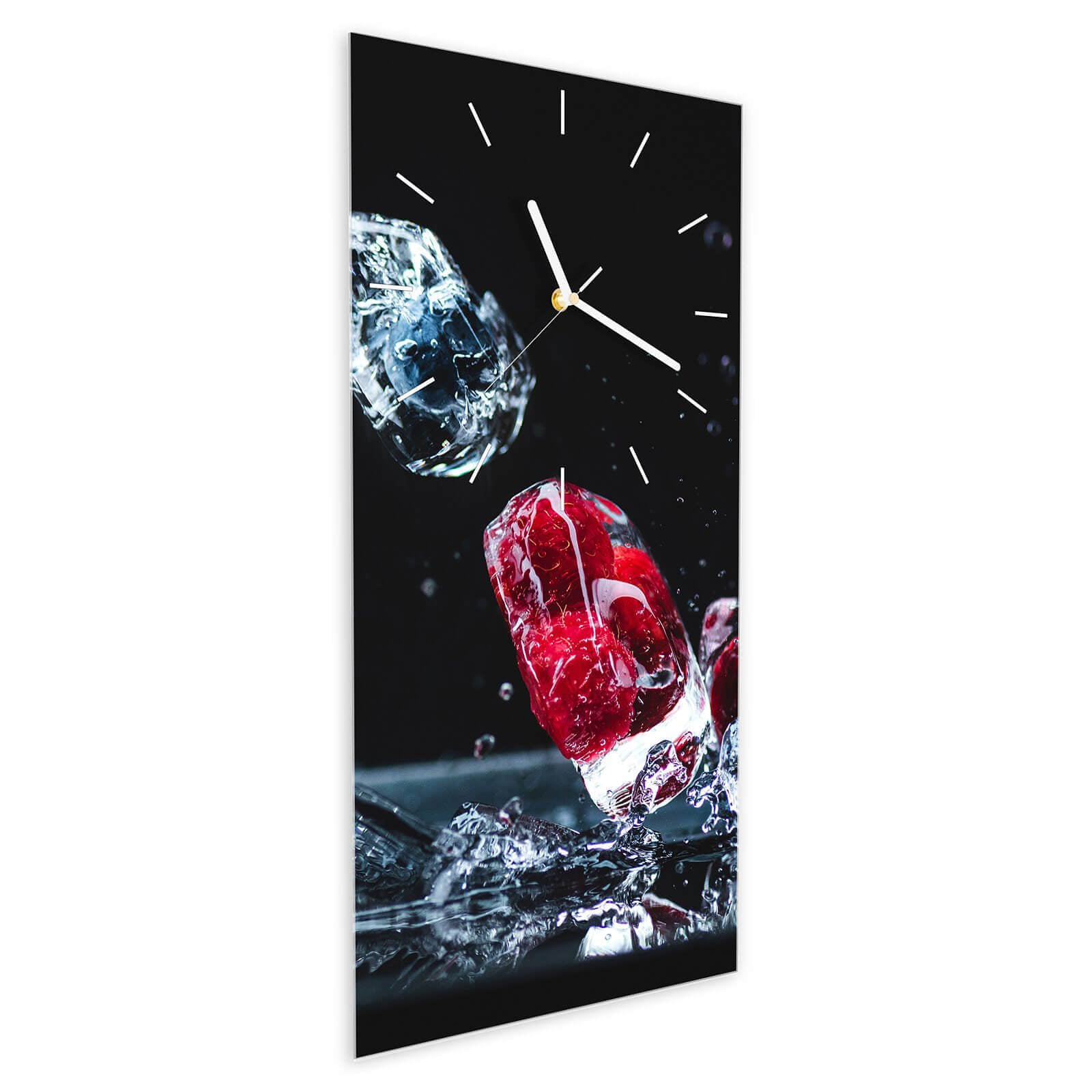 Wanduhr Hochformat - Gefrorene Beere in Eiswürfel