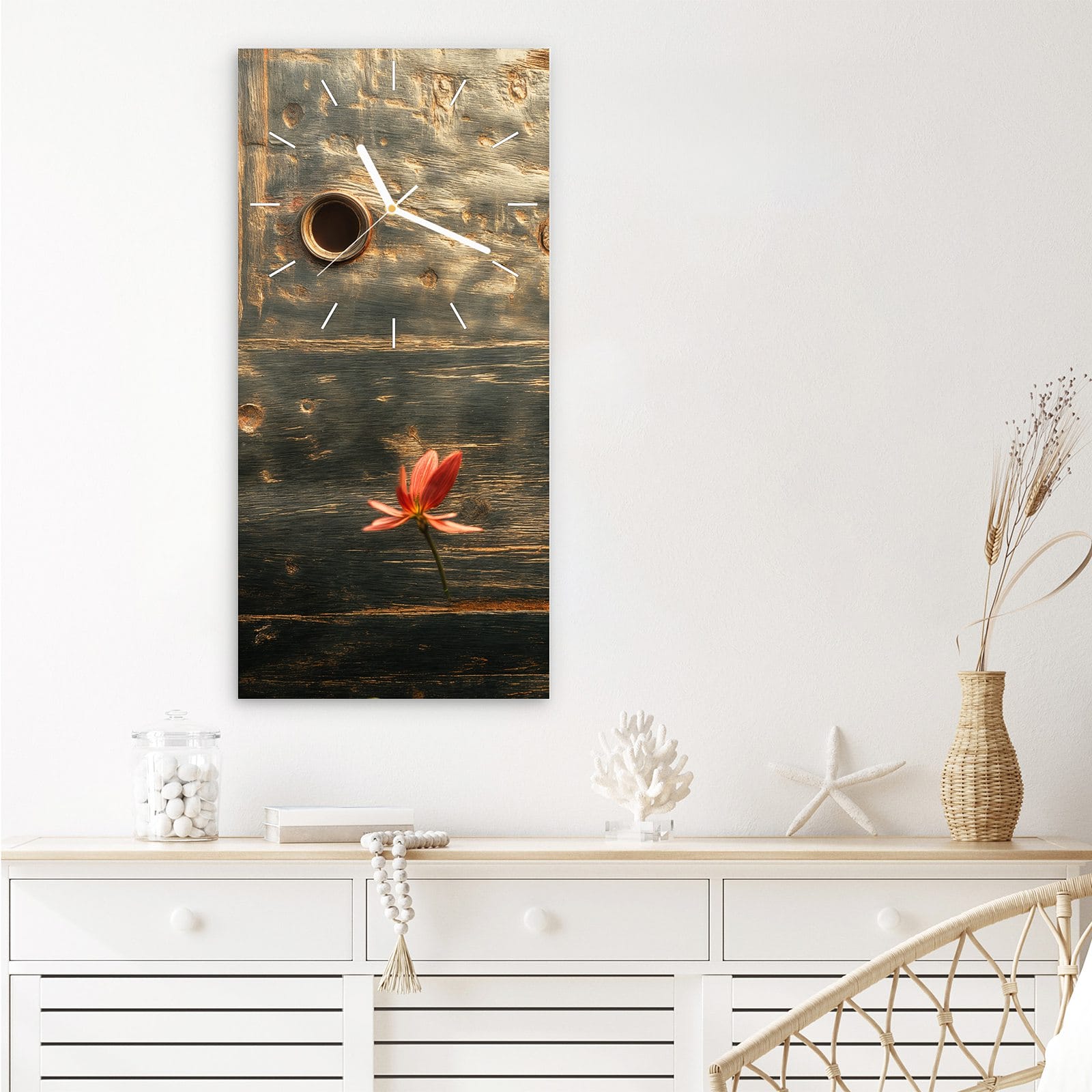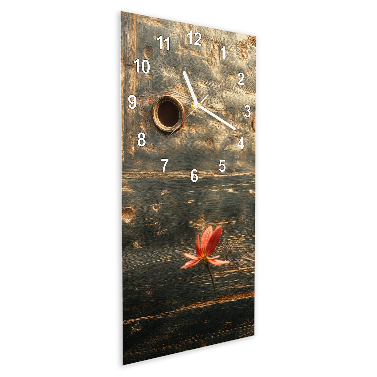 Mit einer Stärke von 4 mm besteht die Uhr aus gehärtetem Glas, das sich durch seine robuste und langlebige Beschaffenheit auszeichnet. Dies macht sie widerstandsfähig gegen alltägliche Beanspruchungen. Die glasüberzogene Oberfläche sorgt für eine beeindruckende Farbbrillanz und Tiefe. Das Motiv Metallplatte Vintage wird detailreich und mit hochauflösender Qualität auf das Glas gedruckt.