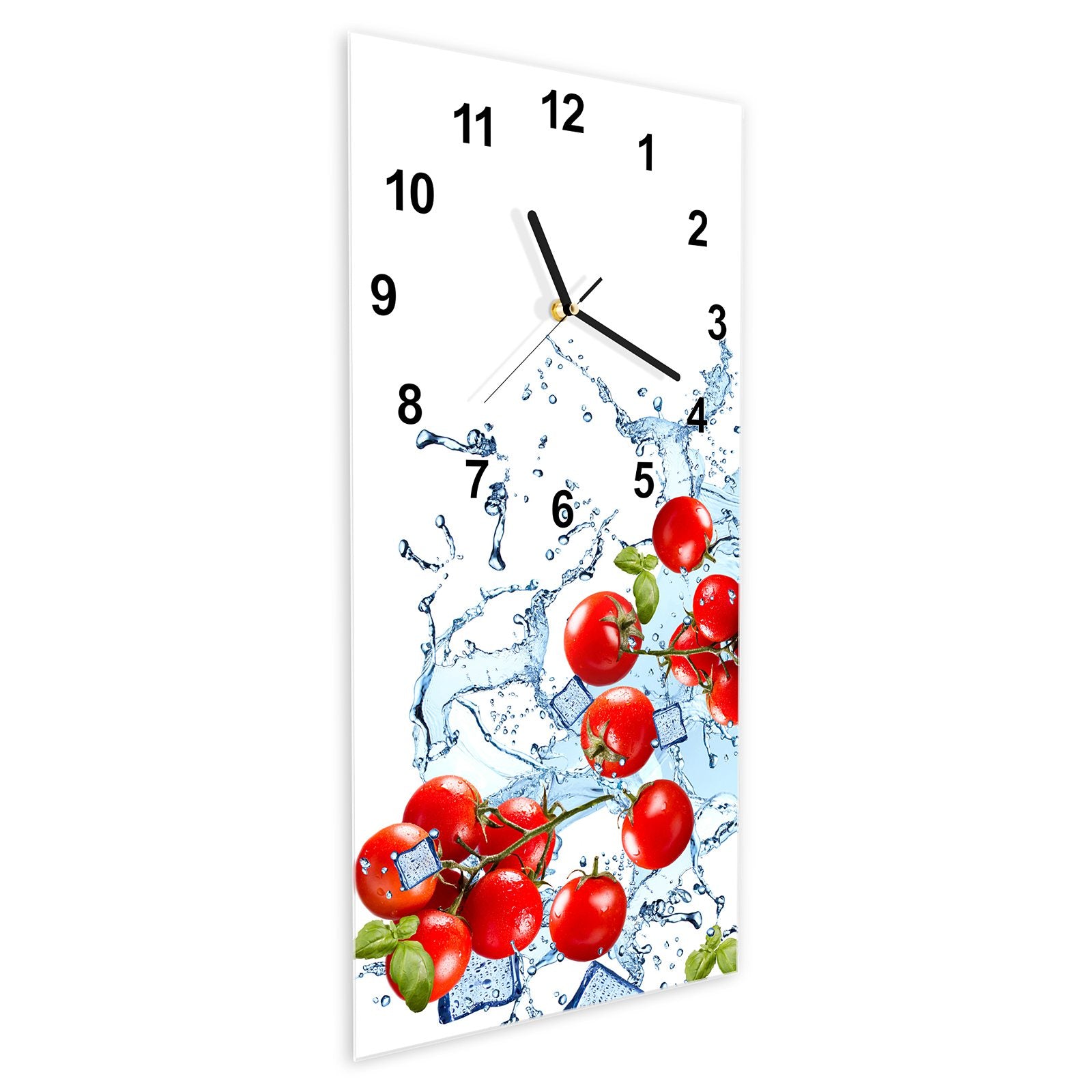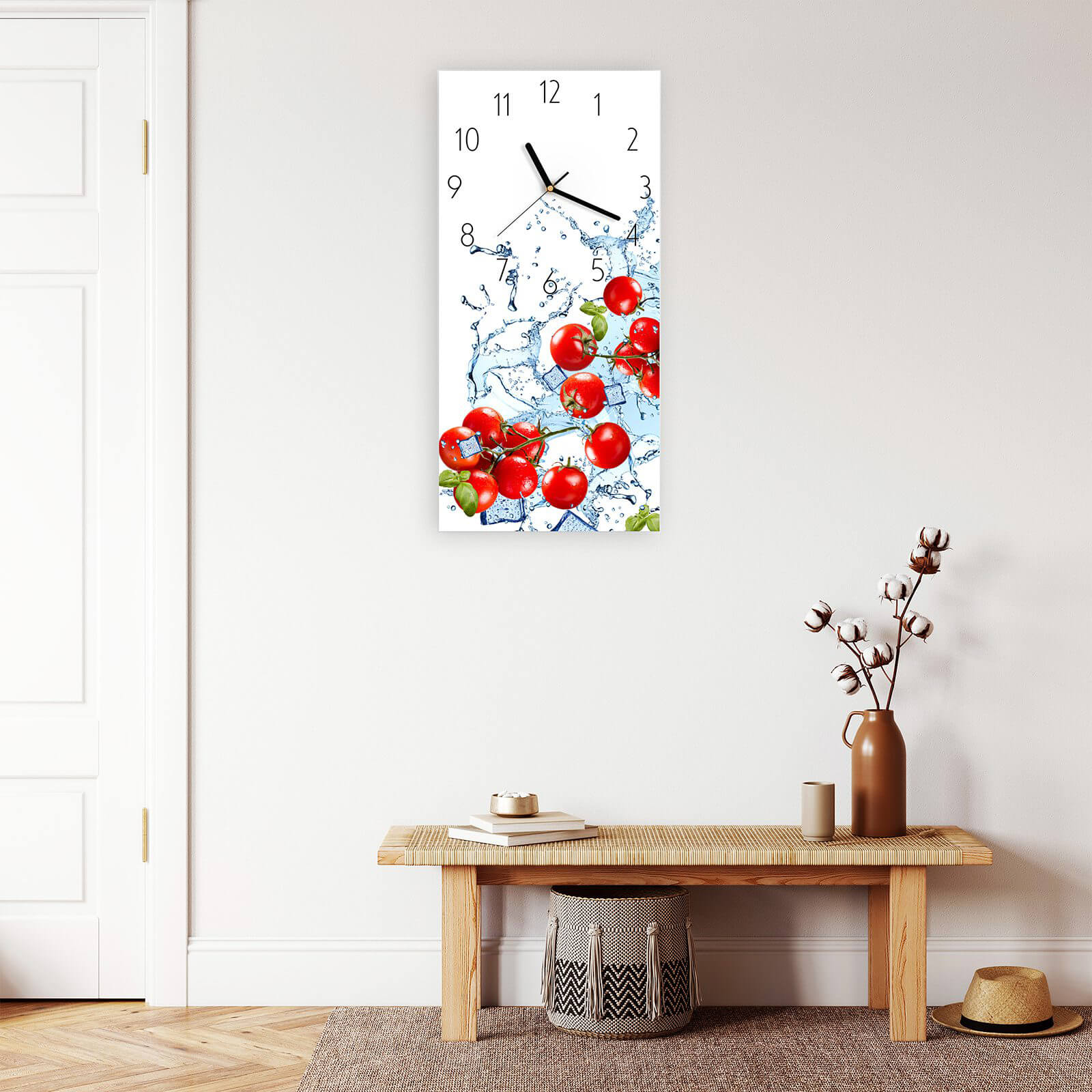 Wanduhr Hochformat - Tomaten auf Wasserwelle