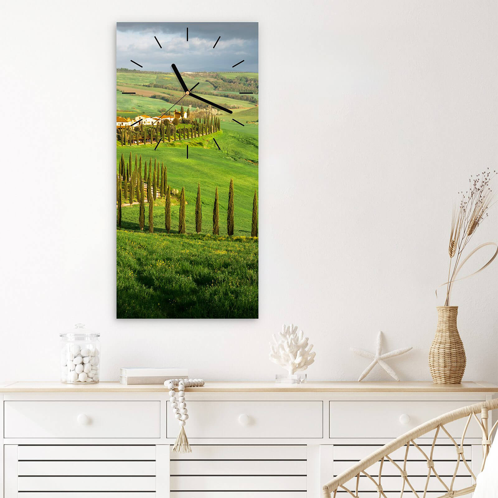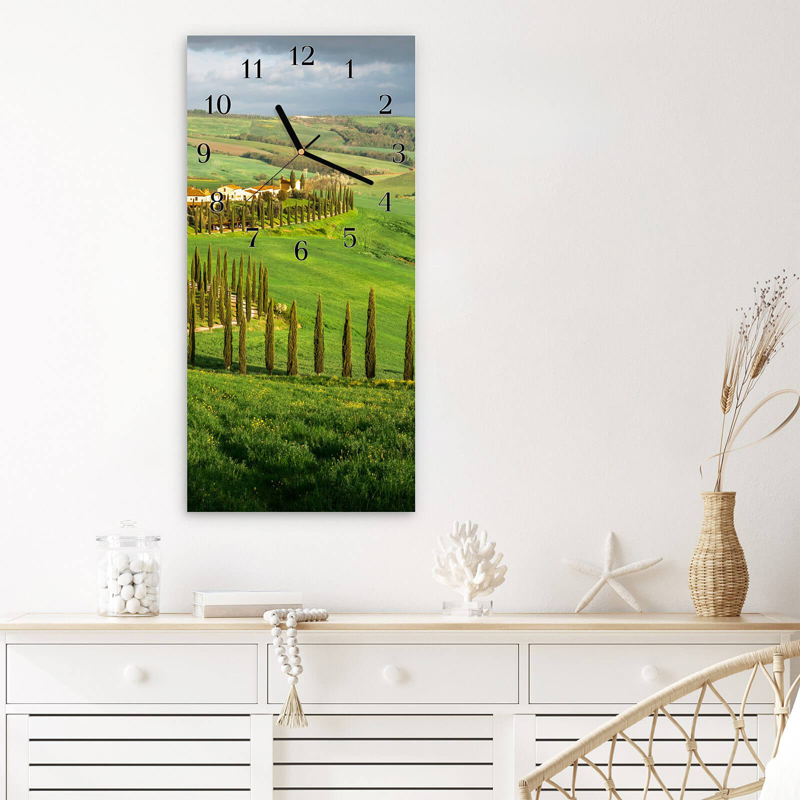 Wanduhr Hochformat - Toskana Landschaft, Straße
